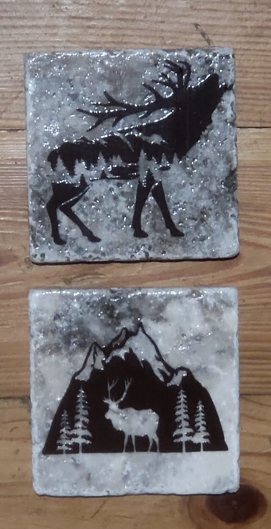 Elk Bear themed Natural stone coasters