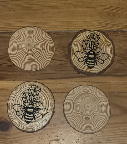 Bumble bee, honey bee round sliced wood coasters