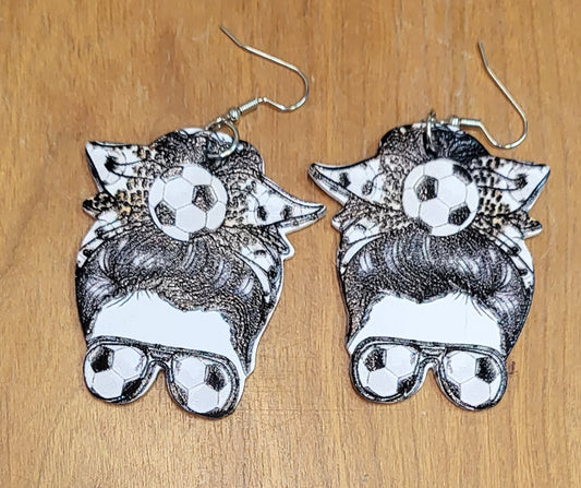 Football soccer baseball softball faux leather tear drop earrings