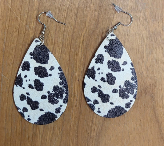 Animal print faux leather tear drop earrings